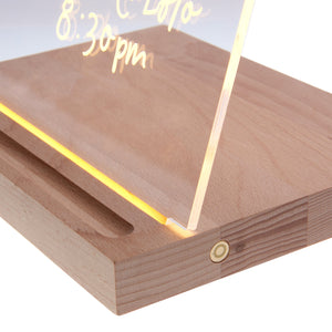 Illuminate your ideas and notes with the sleek and modern Acrylic Lit Memo Tablet. Designed to blend seamlessly into your contemporary space, this frameless light-up dry erase board sets the stage for your daily organization and brilliant brainstorms. Ideal for any setting, from the bustling office to the tranquil corners of your home, it guarantees to capture attention and kindle creativity. The acrylic board lights up to highlight your notes, ensuring they're visible even in low-light conditions. Measuring at 9 x 7 x 12 inches, it provides ample writing space without dominating your desk. A solid wood foundation that elegantly houses the included white dry erase marker.