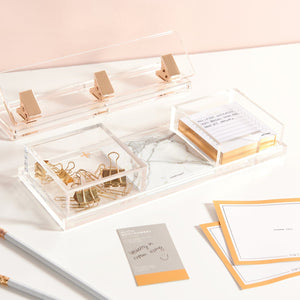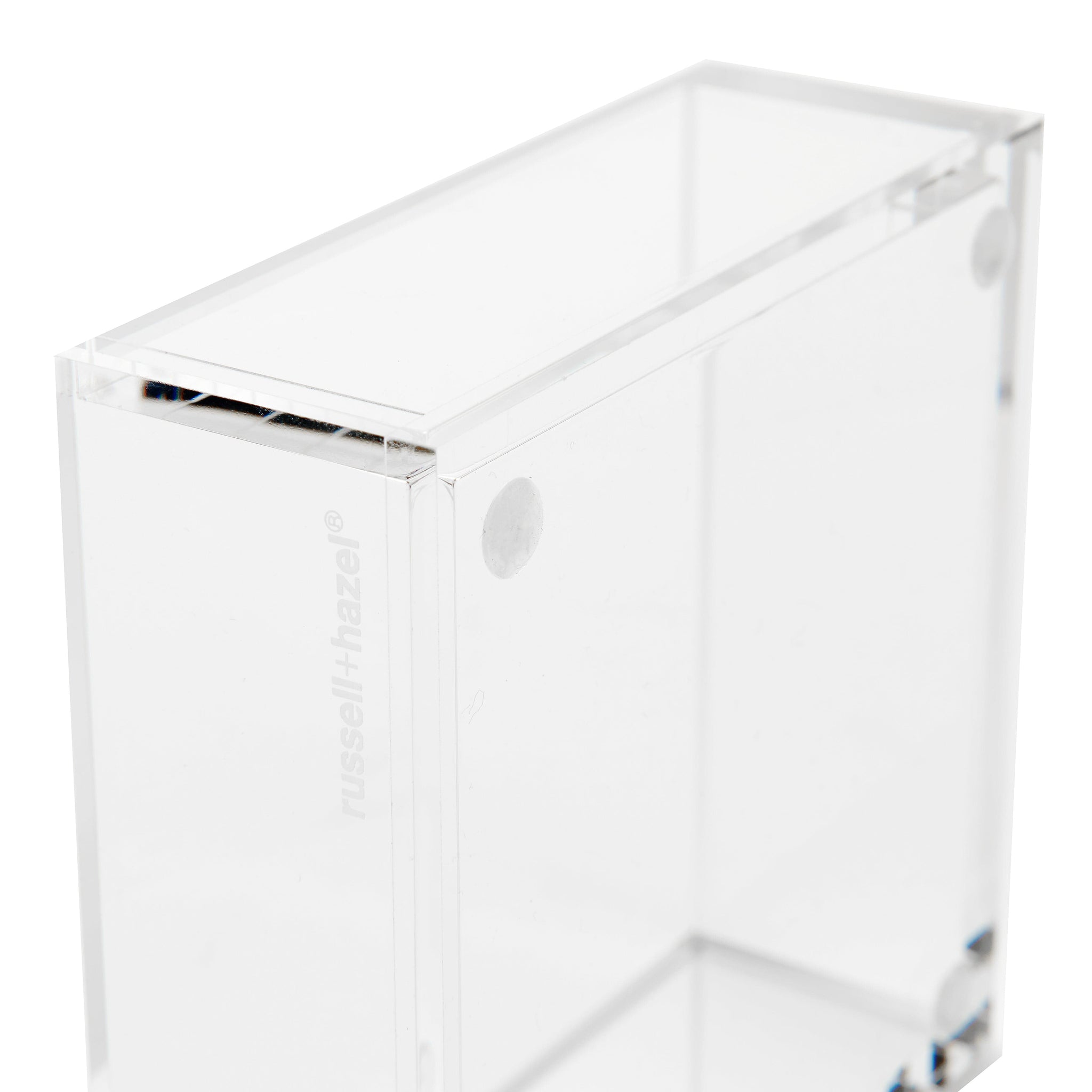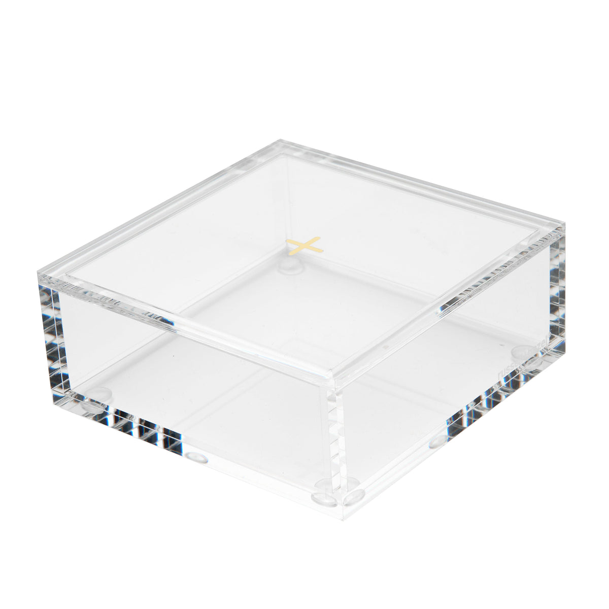 This sleek and stylish acrylic bloc is the perfect way to organize your desk or makeup supplies. This 4” x 4” x 1.5” container is perfect for everything from push pins, paper clips to makeup sponges and lipstick. The clear acrylic material gives it a modern look that will complement any style, and the lid helps keep everything tidy and dust-free. Whether you use it at home or in the office, this bloc is sure to make your life more organized and stylish.