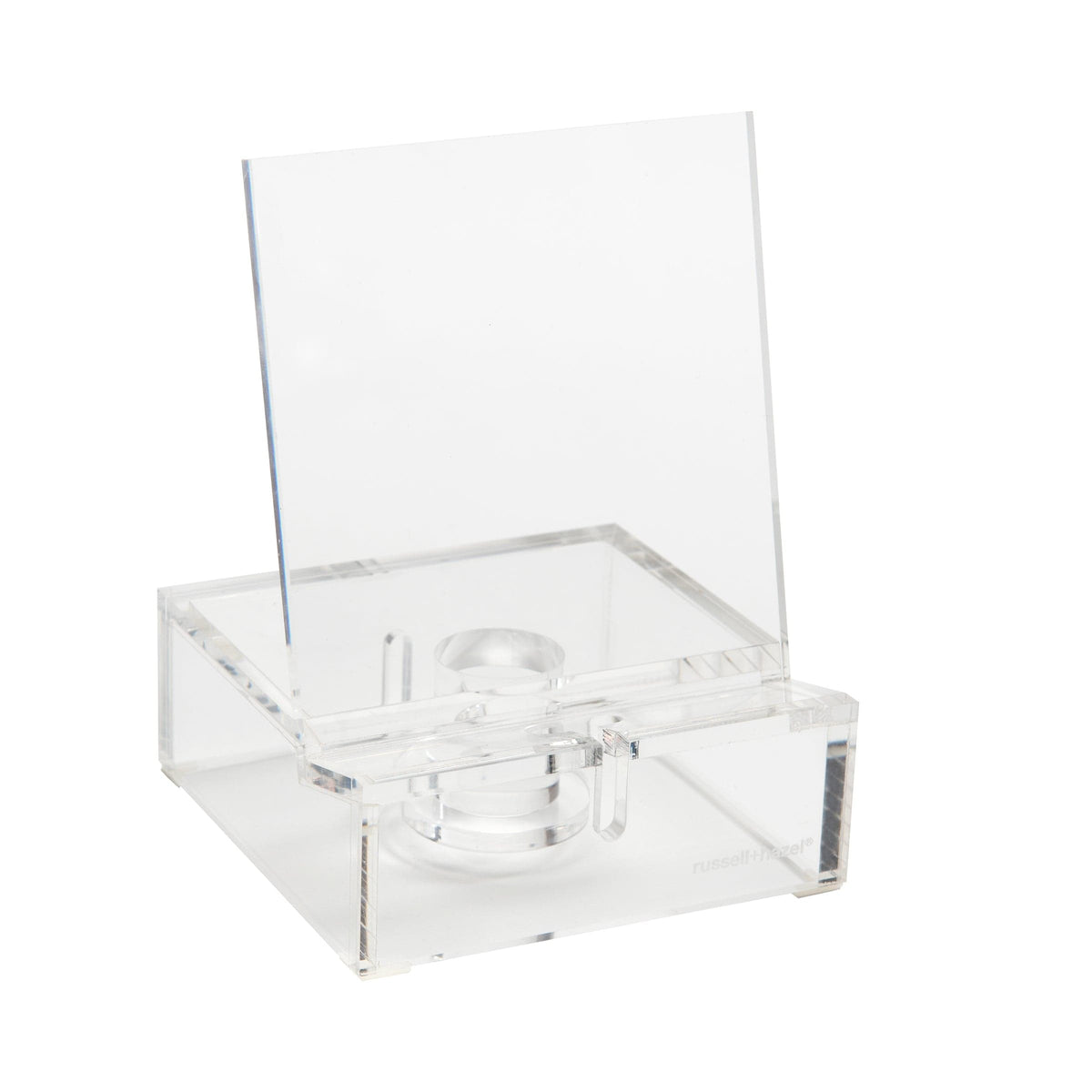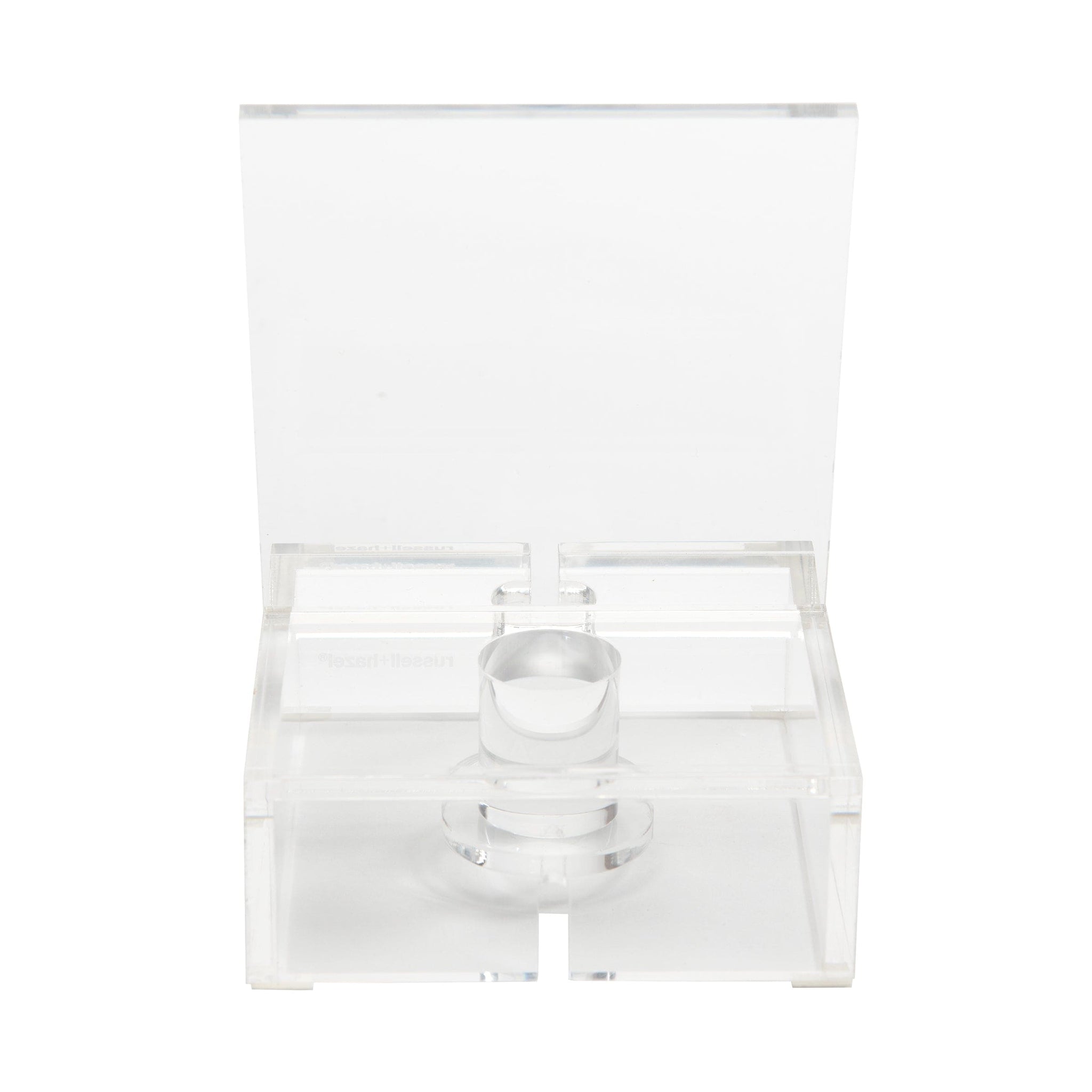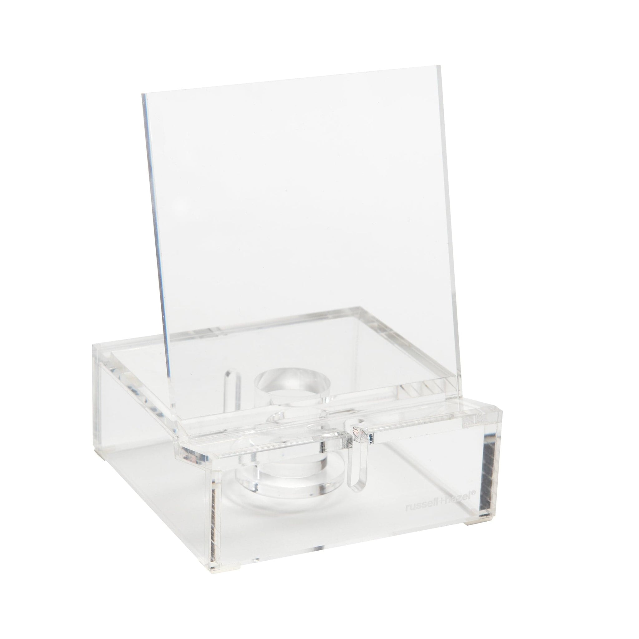 Keep your phone on display with the 4” x 4” x 5.5” acrylic phone dock. The chic modern design elevates your desk by accommodating several phone sizes as well as a charging cord manager. Hard cast acrylic is durably constructed with finely polished edges. Excellent to use on its own or as a coordinating piece in an entire system, this phone dock perfectly integrates with the pieces in our Stackable Bloc collection, including our acrylic bloc tray and acrylic bloc.