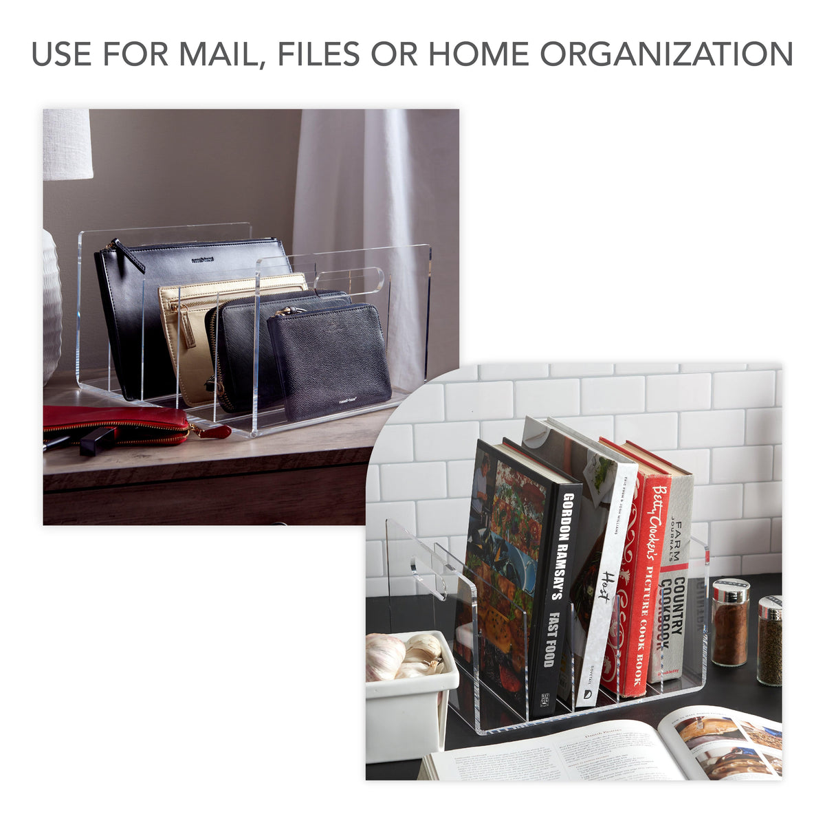 • Enjoy the simplicity of our desktop file sorter, or use in combination with our full line of acrylic desk accessories