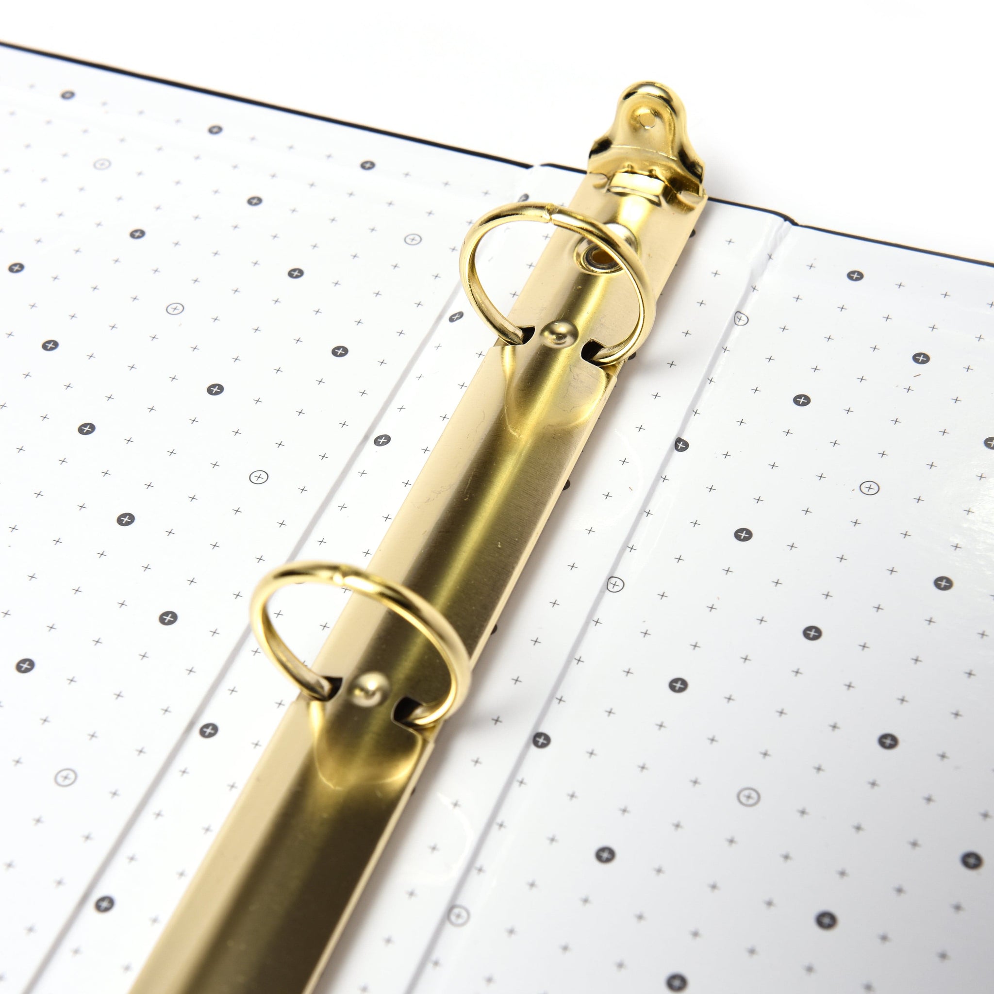 Start with a beautiful binder to organize your beautiful life. This premium black vegan leather 8 x 9 inch mini 3 ring binder features a textured vegan leather cover and gold-tone hardware. Create a unique planning and organizing system that fits your personal needs with our diverse assortment of trend forward and functional mini binder inserts and accessories. Elevate your planning, journaling, or note-taking with the lay-flat design. The chic modern design expresses your eye for detail, featuring the an aesthetically designed cover to inspire your best work.