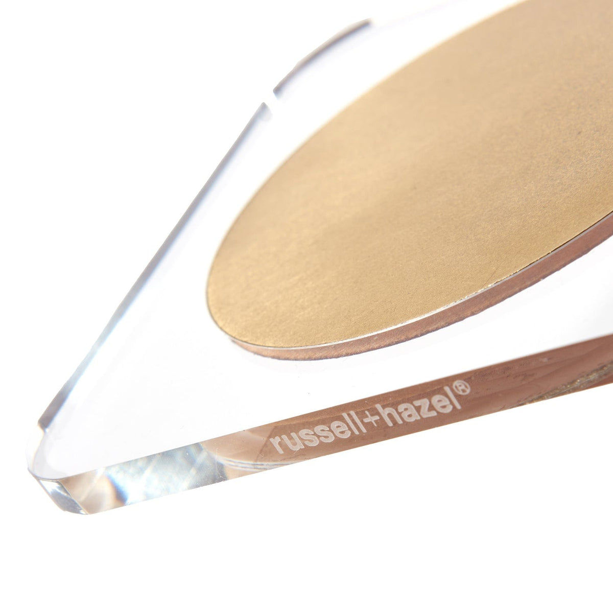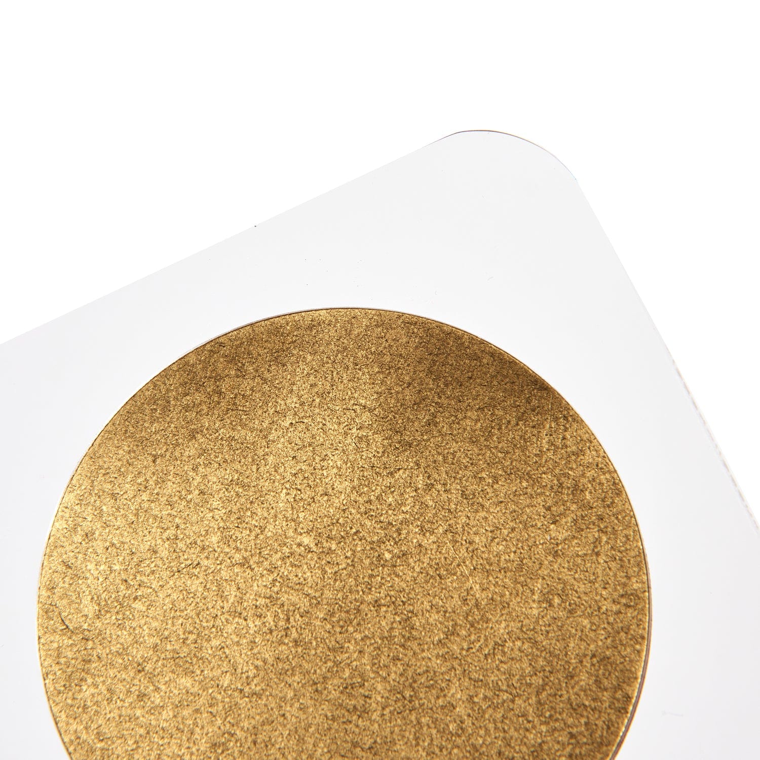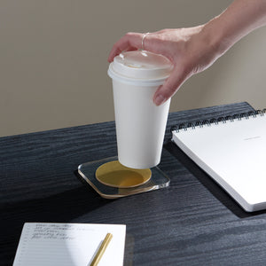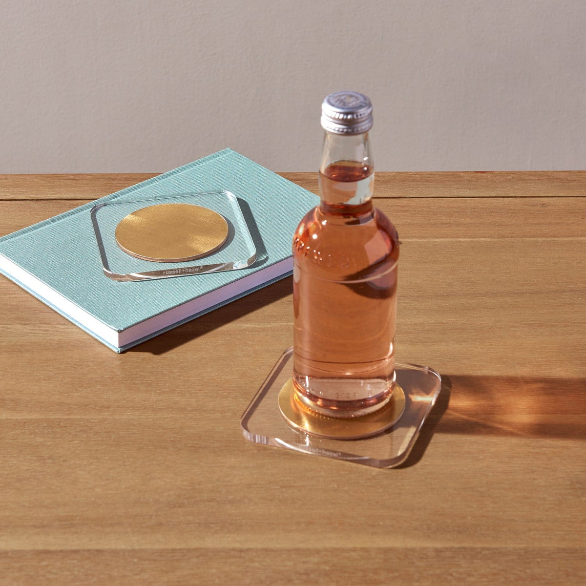 Add a touch of luxury to your home with these modern acrylic coasters. The sleek and sophisticated design is perfect for any décor, while the gold accent adds a touch of glamour. The sturdy construction means they will protect your furniture from spills and scratches, while the cork base prevents slipping. Whether you use them in the office, kitchen, dining room, living room or bar, these coasters are sure to impress your guests. Acrylic coasters are light weight and decorative with rounded corner design. Each coaster is 0.25 thick and 4” x 4” in size with a 3” gold diameter in the center. Designed to coordinate with our russell and hazel Acrylic Bloc Collection or Acrylic Desk Essentials.